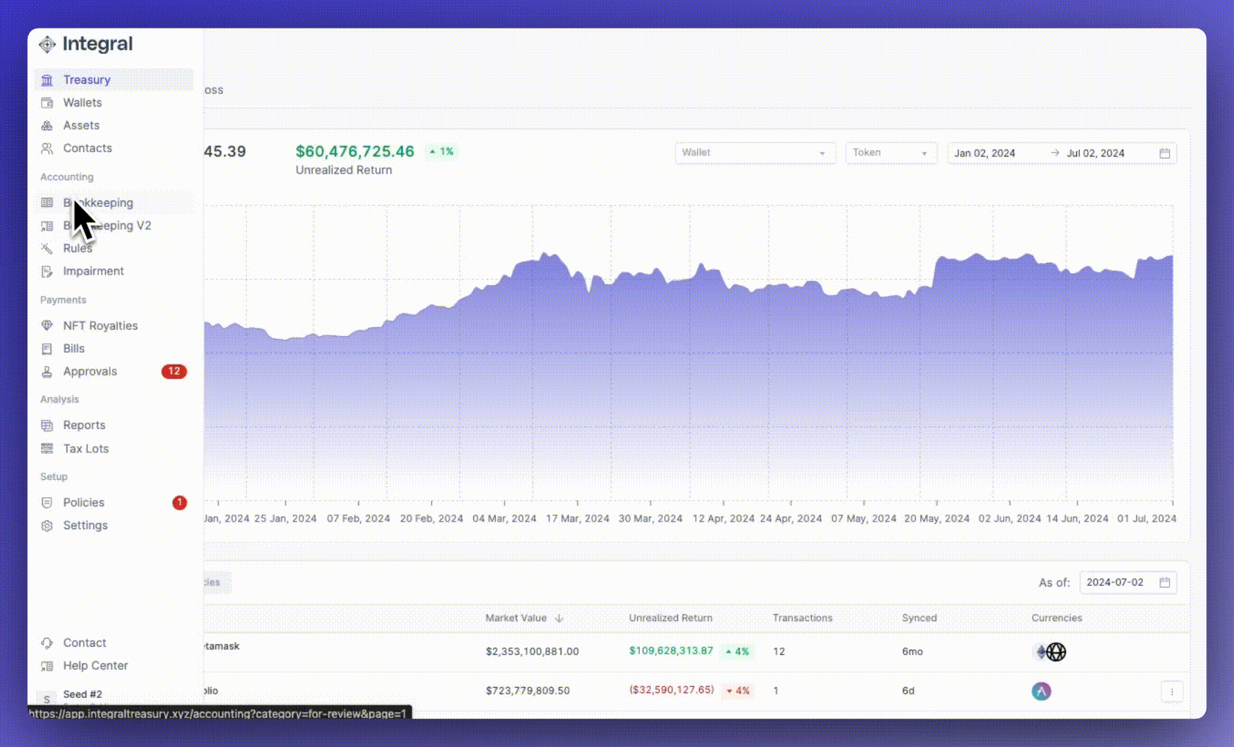 2. Navigate to the **Spam** section. This page will display all tokens and NFTs associated with your Integral account.