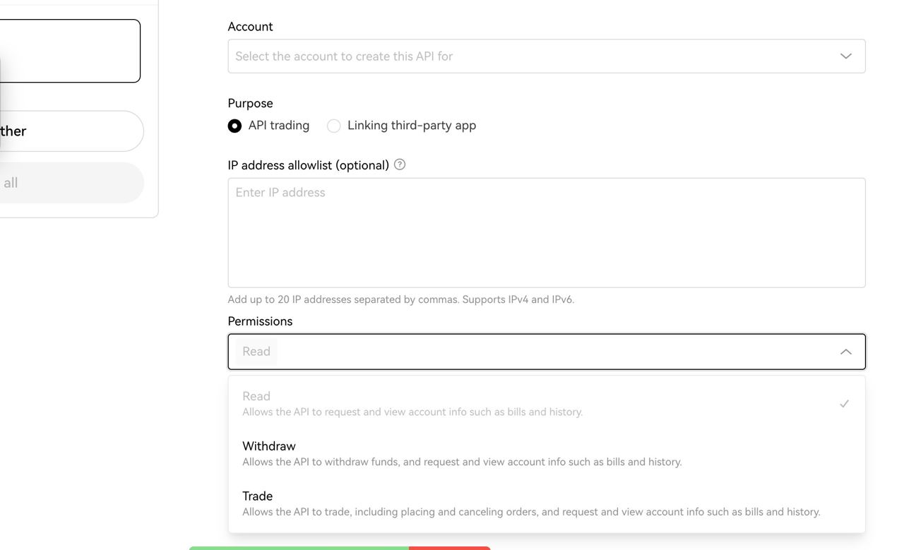 <figure><img src="https://3061199926-files.gitbook.io/~/files/v0/b/gitbook-x-prod.appspot.com/o/spaces%2Ft1fkaxq4yvhcAFiQKv7R%2Fuploads%2Fgo4FRmdivHL8l1fMcTlc%2Fphoto_2024-08-08%2015.39.24.jpeg?alt=media&#x26;token=0e8343ad-fa99-4279-9172-889987a69aac" alt=""><figcaption><p>Create an API key in OKX</p></figcaption></figure>