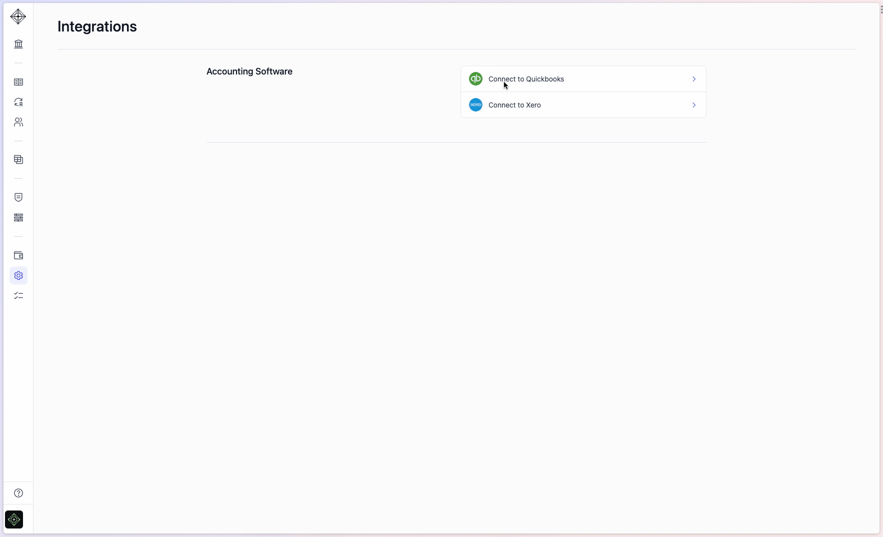 <figure><img src="https://3061199926-files.gitbook.io/~/files/v0/b/gitbook-x-prod.appspot.com/o/spaces%2Ft1fkaxq4yvhcAFiQKv7R%2Fuploads%2F91SuBkDE11tLC1qNS8Se%2F2023-05-11%2014.31.59.gif?alt=media&#x26;token=07e526da-f032-40a8-bf61-51bae666f88e" alt=""><figcaption><p>Connecting to QuickBooks from the Integrations page. A similar flow exists for Xero.</p></figcaption></figure>